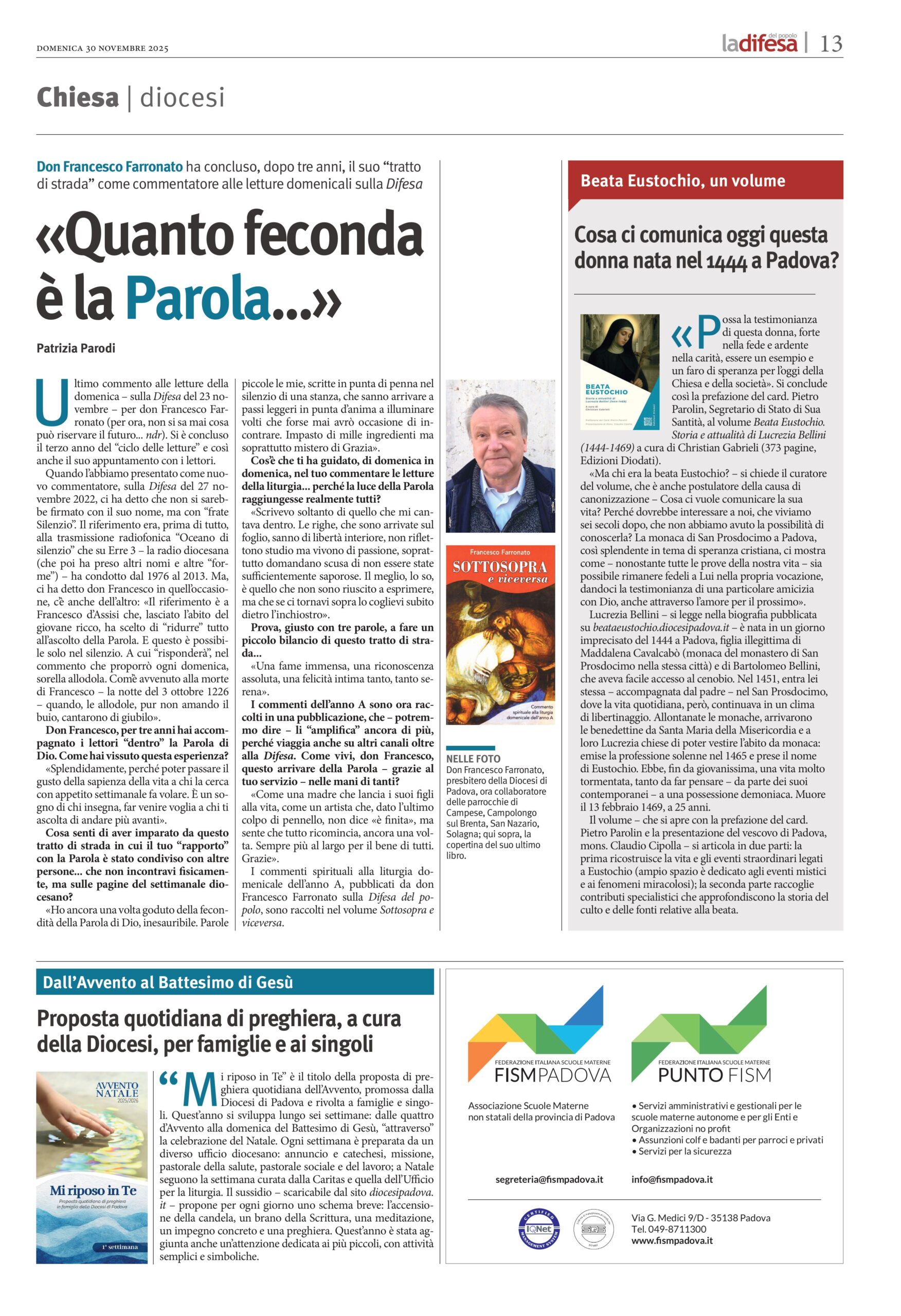 • La Difesa del Popolo del 30 novembre 2025, p. 13: SCARICA QUI